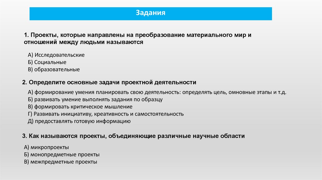 Задания1. Проекты, которые направлены на преобразование материального мир и