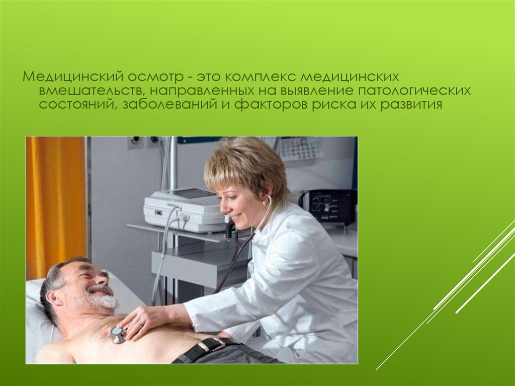 Медицинский осмотр - это комплекс медицинскихвмешательств, направленных на выявление патологических