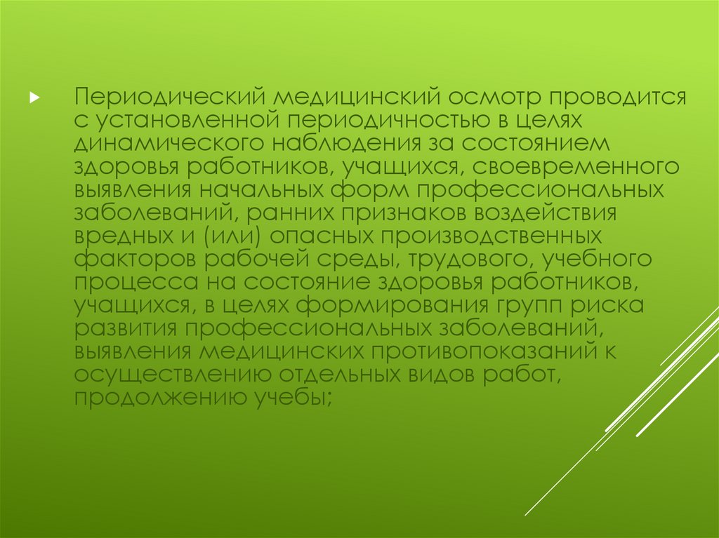 Периодический медицинский осмотр проводитсяс установленной периодичностью в целях