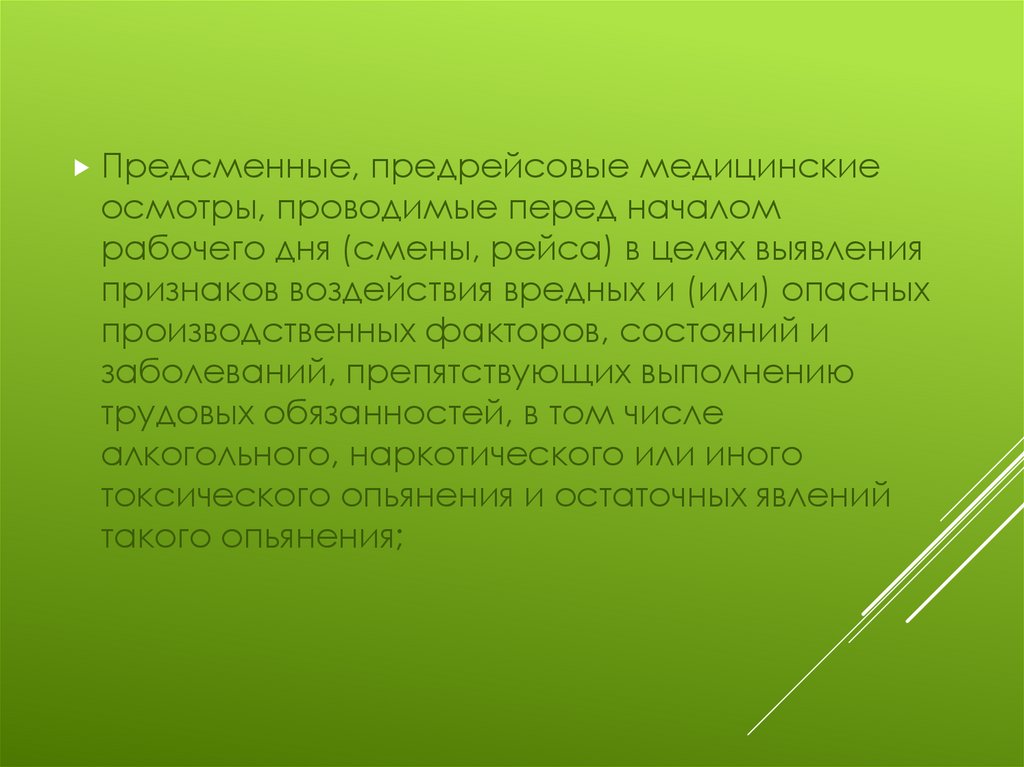 Предсменные, предрейсовые медицинскиеосмотры, проводимые перед началом