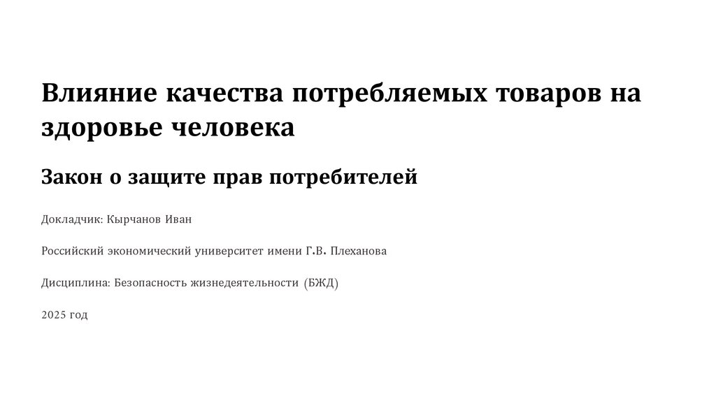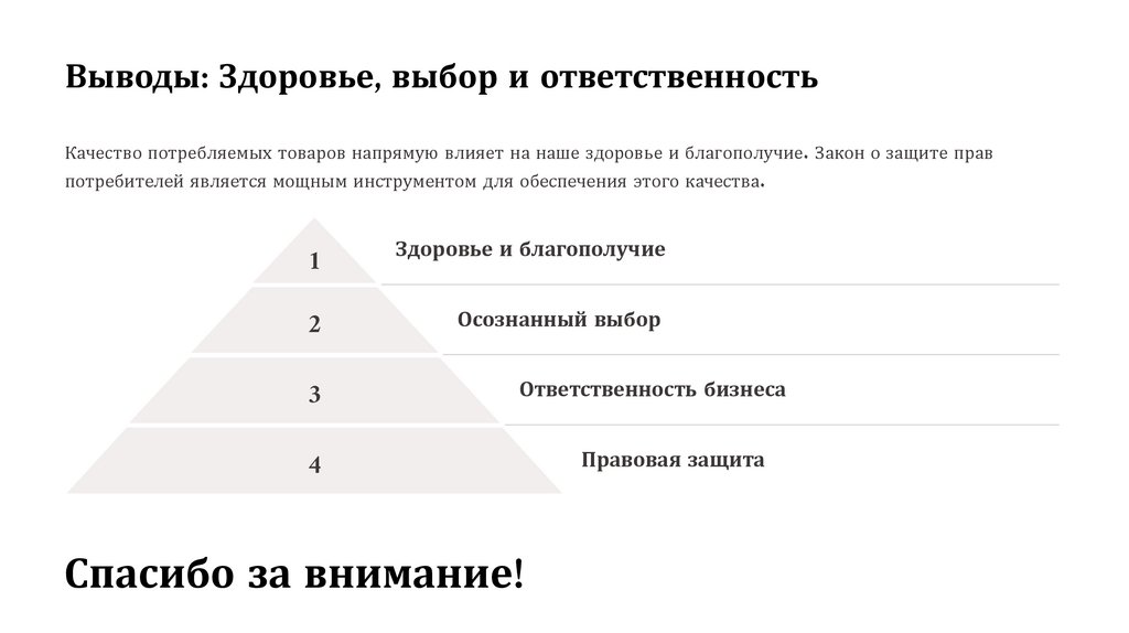 Выводы: Здоровье, выбор и ответственностьКачество потребляемых товаров напрямую влияет на наше здоровье и благополучие. Закон о защите прав