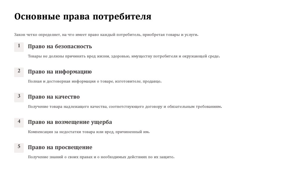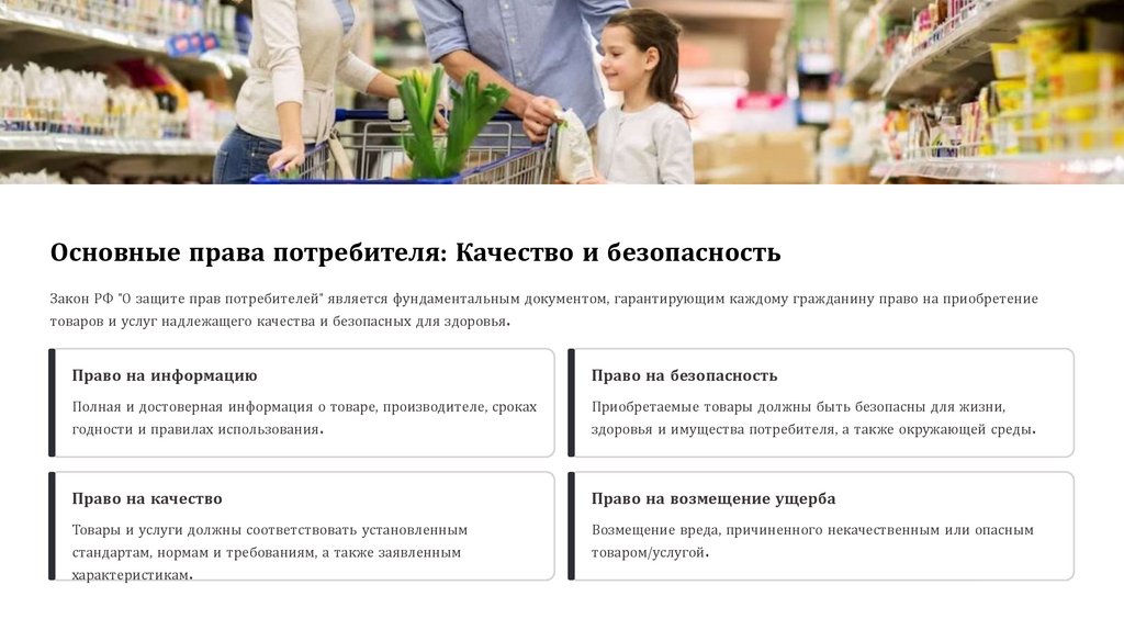 Основные права потребителя: Качество и безопасностьЗакон РФ "О защите прав потребителей" является фундаментальным документом, гарантирующим каждому гражданину право на приобретение