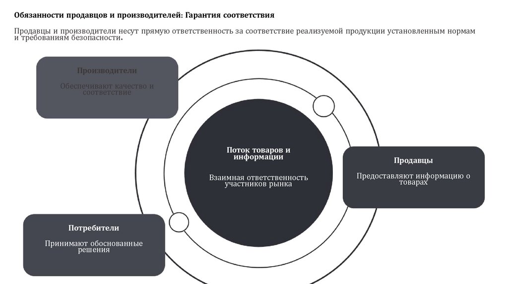 Обязанности продавцов и производителей: Гарантия соответствияПродавцы и производители несут прямую ответственность за соответствие реализуемой продукции установленным нормам