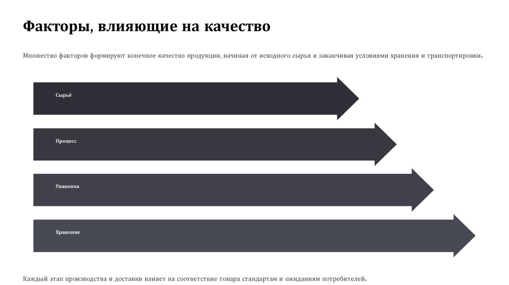 Факторы, влияющие на качествоМножество факторов формируют конечное качество продукции, начиная от исходного сырья и заканчивая условиями хранения и транспортировки.