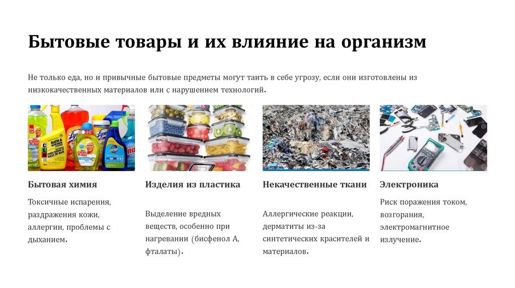 Бытовые товары и их влияние на организмНе только еда, но и привычные бытовые предметы могут таить в себе угрозу, если они изготовлены из
