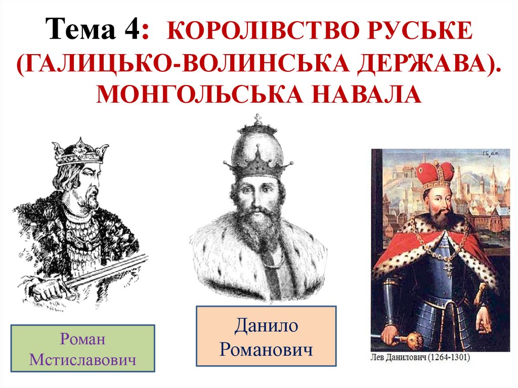 Тема 4: КОРОЛІВСТВО РУСЬКЕ(ГАЛИЦЬКО-ВОЛИНСЬКА ДЕРЖАВА).