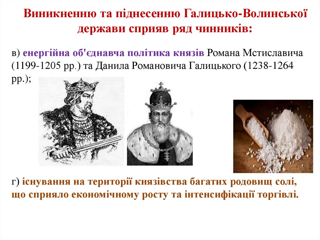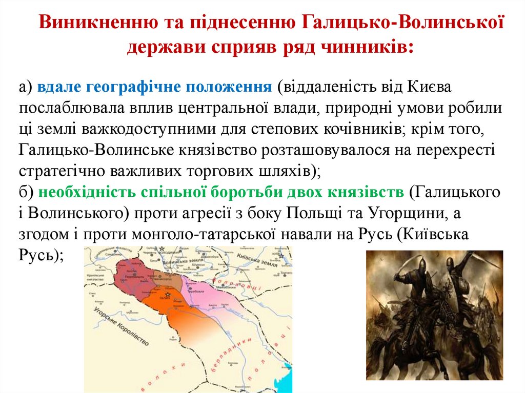 Виникненню та піднесенню Галицько-Волинськоїдержави сприяв ряд чинників: