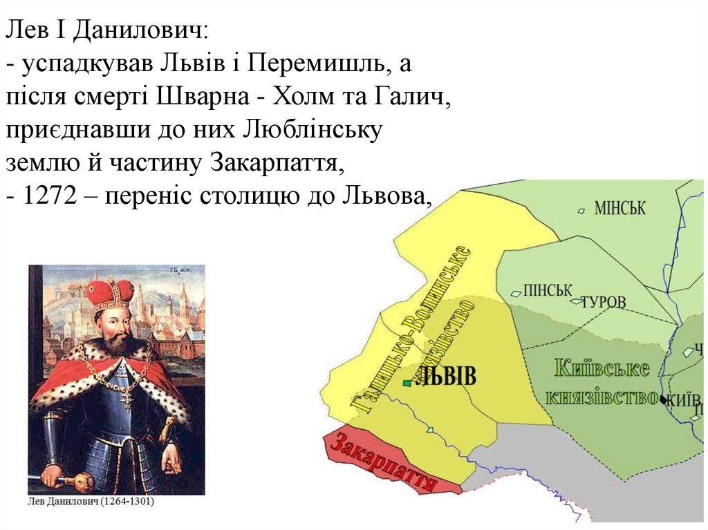 Лев І Данилович:- успадкував Львів і Перемишль, а
