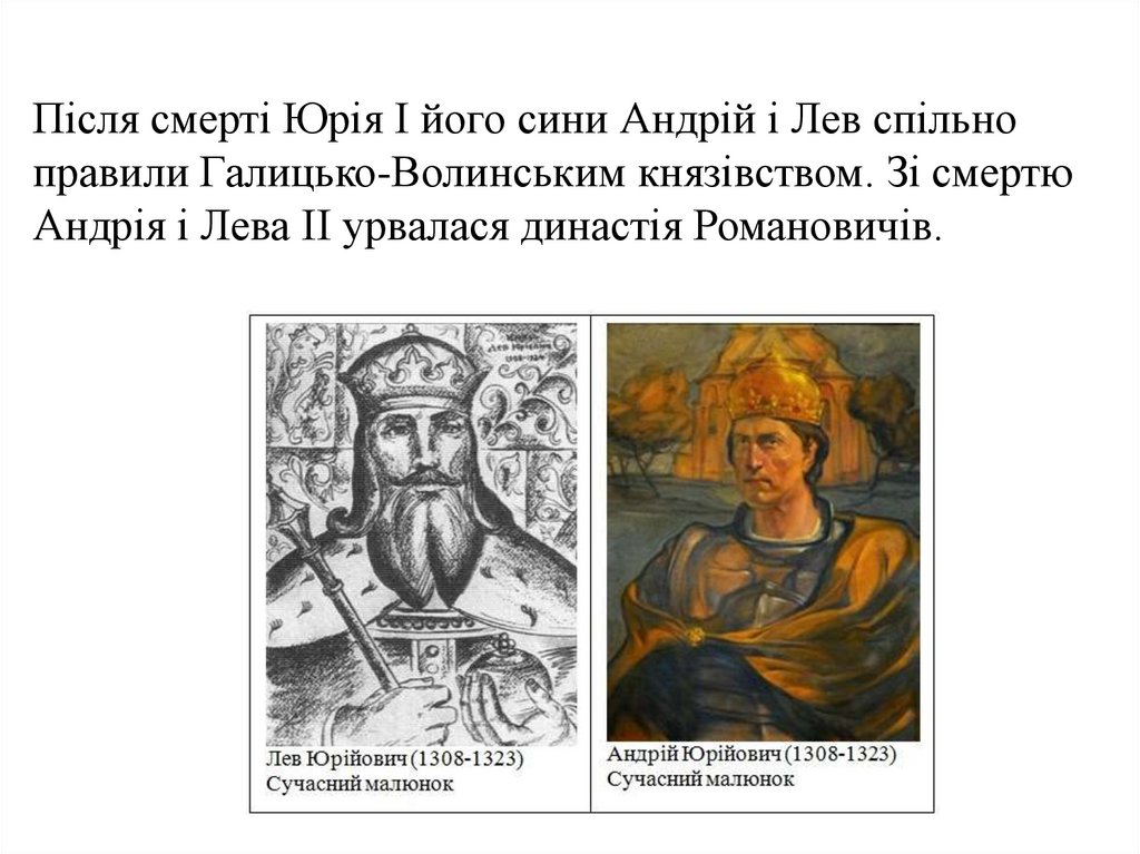 Після смерті Юрія І його сини Андрій і Лев спільноправили Галицько-Волинським князівством. Зі смертю