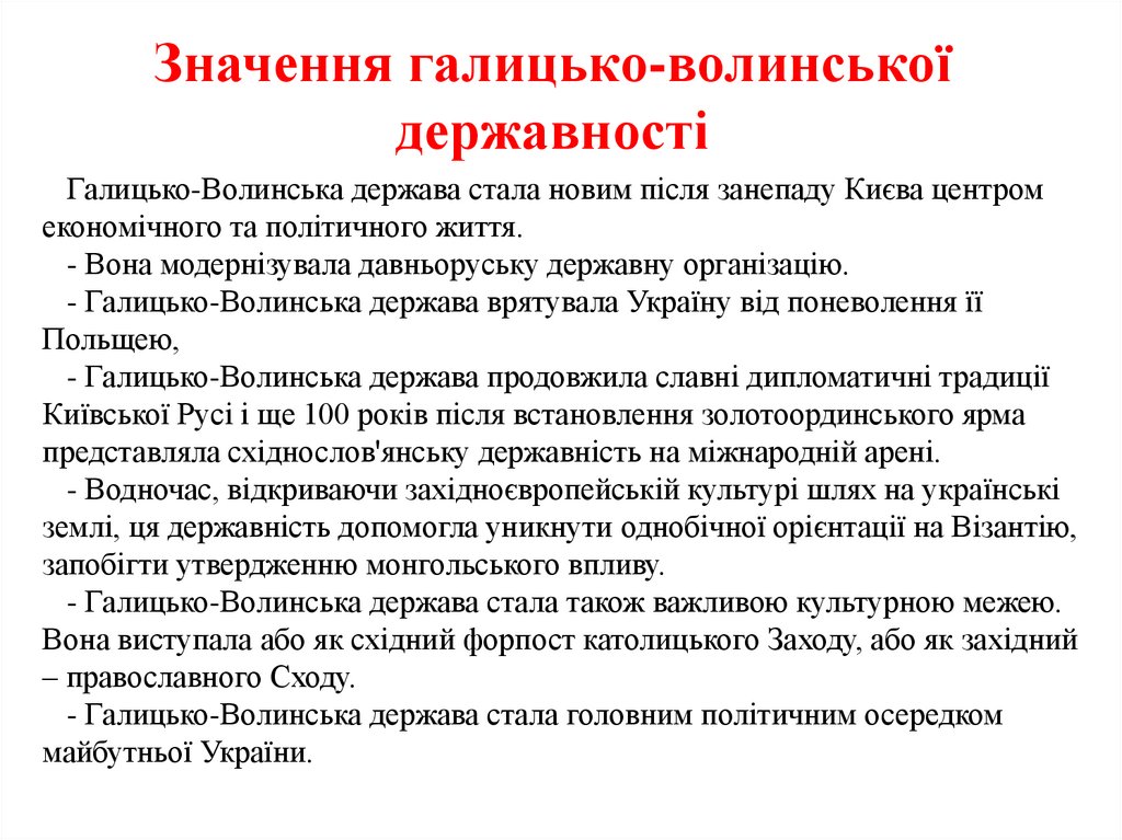 - Галицько-Волинська держава стала також важливою культурною межею.