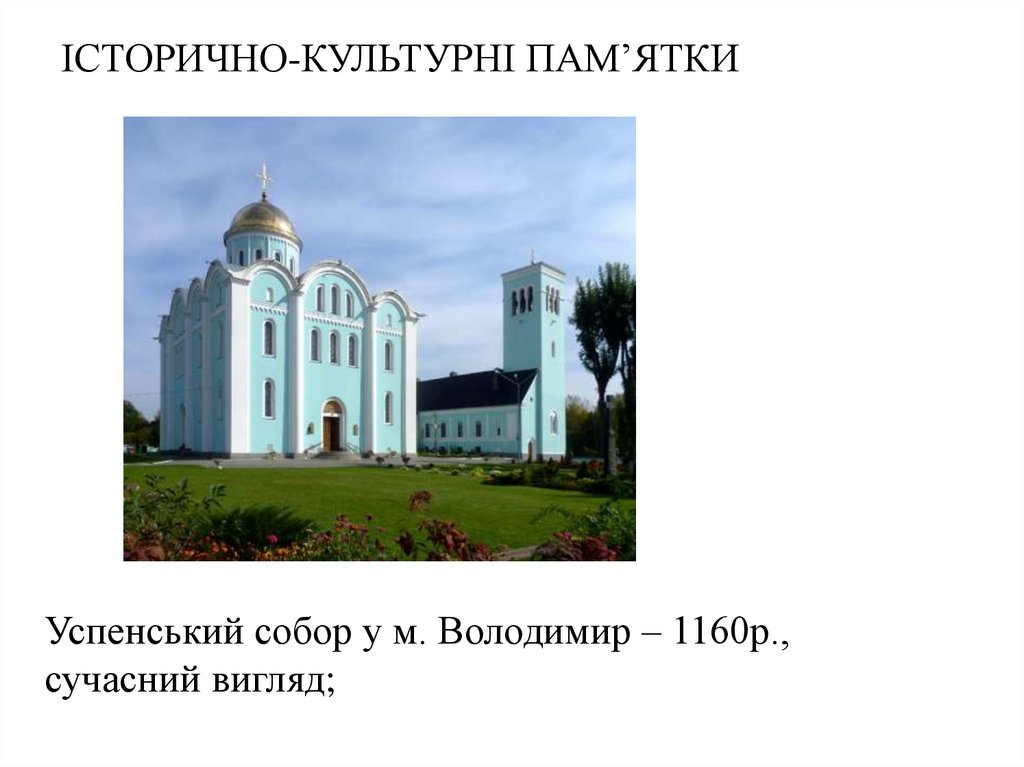 ІСТОРИЧНО-КУЛЬТУРНІ ПАМ’ЯТКИУспенський собор у м. Володимир – 1160р.,