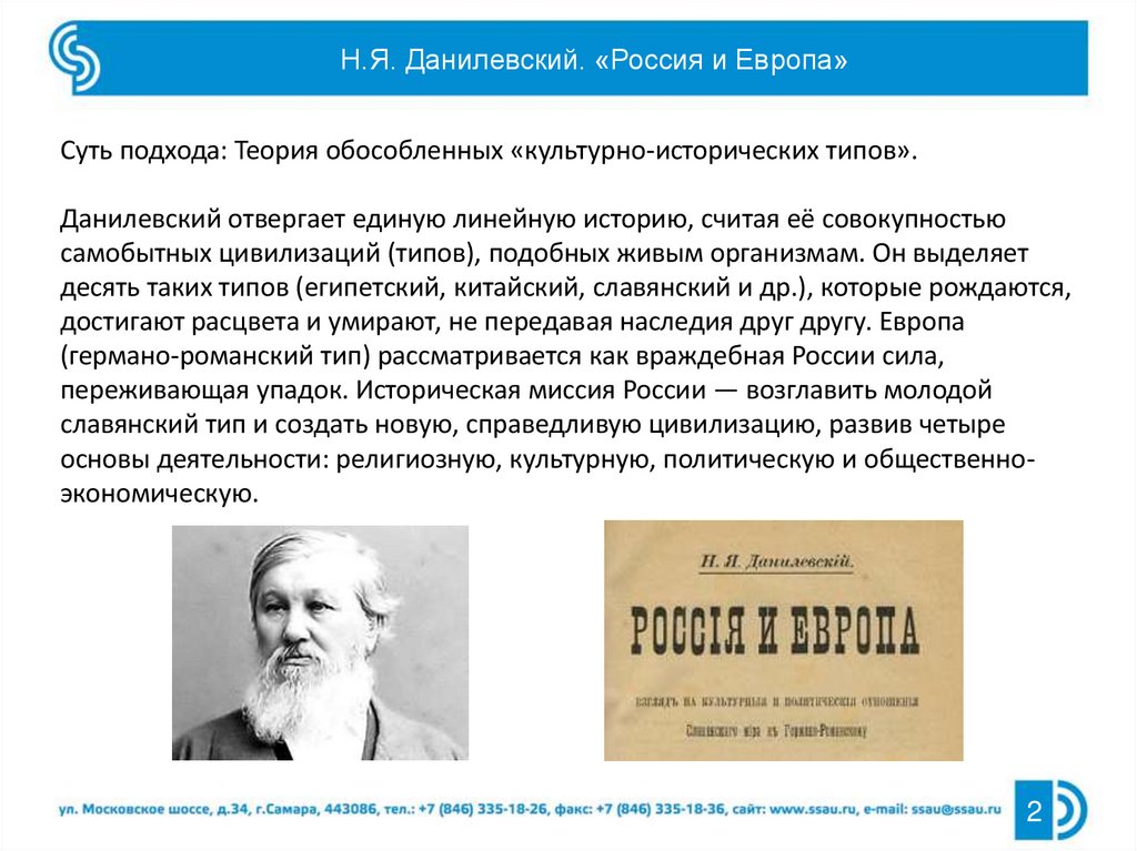 Н.Я. Данилевский. «Россия и Европа»Суть подхода: Теория обособленных «культурно-исторических типов».