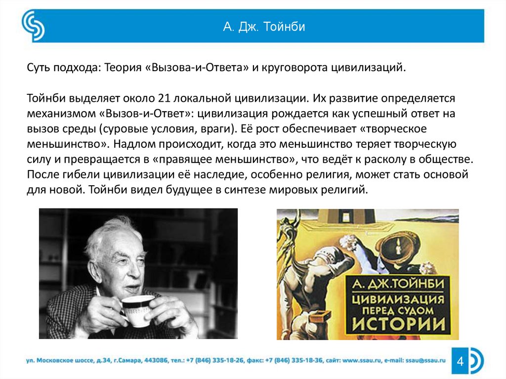 А. Дж. ТойнбиСуть подхода: Теория «Вызова-и-Ответа» и круговорота цивилизаций.