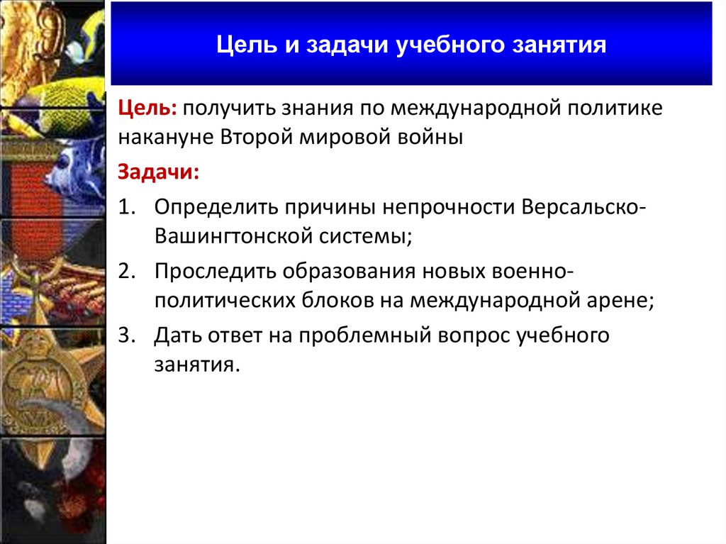 Цель и задачи учебного занятияЦель: получить знания по международной политике