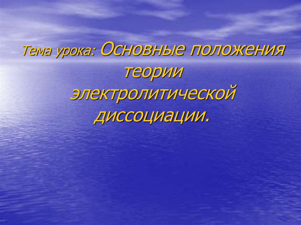 1. Тема урока: Основные положения теории электролитической диссоциации.