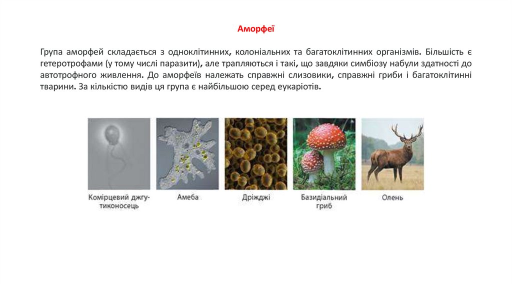 автотрофного живлення. До аморфеїв належать справжні слизовики, справжні гриби і багатоклітинні