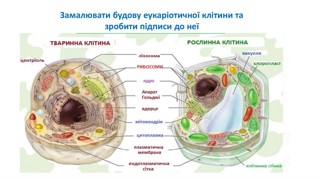 Замалювати будову еукаріотичної клітини тазробити підписи до неї