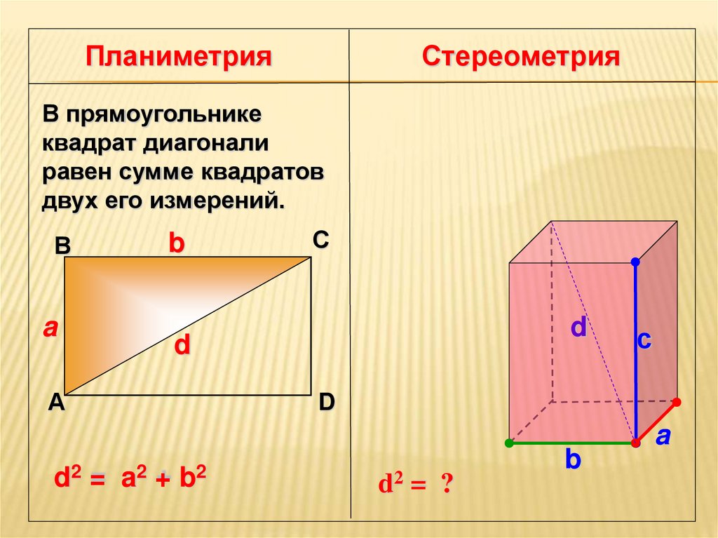 d2 = a2 + b2 + с2
