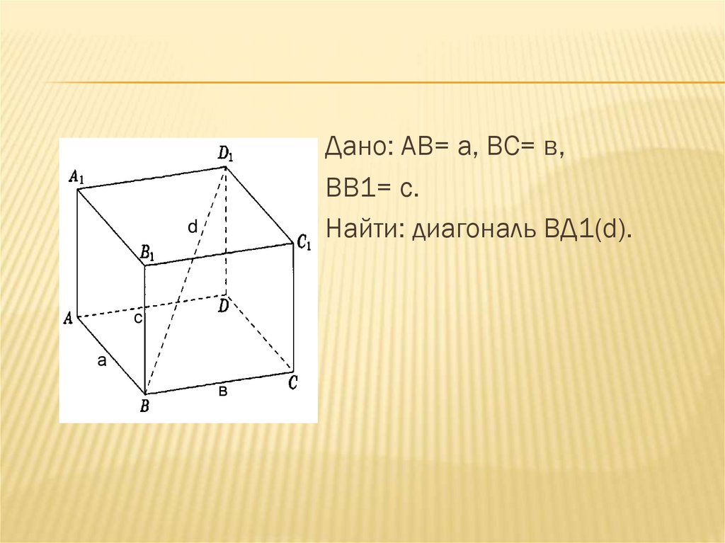 Найти: диагональ ВД1(d).