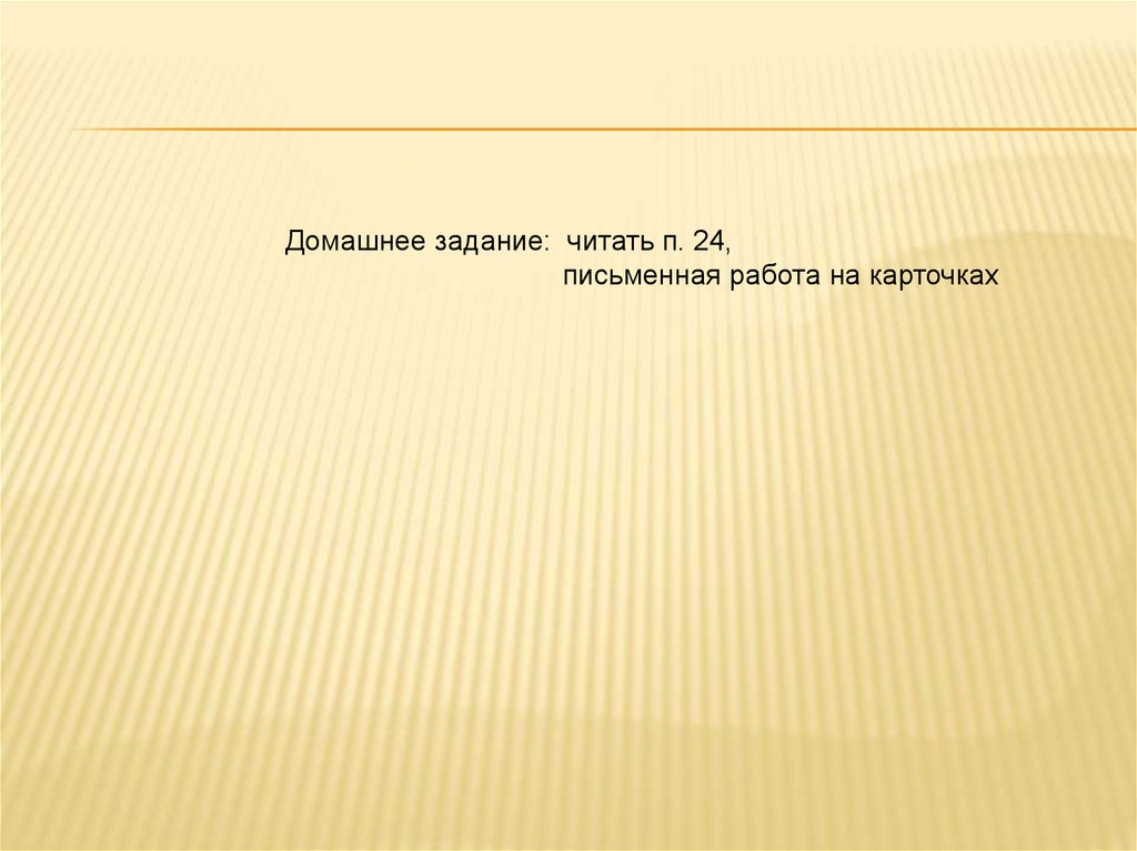 Домашнее задание: читать п. 24,письменная работа на карточках