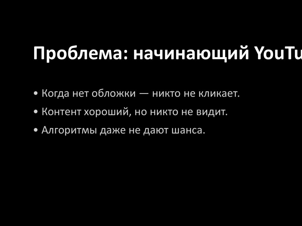Проблема: начинающий YouTu• Когда нет обложки — никто не кликает.