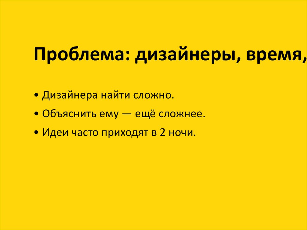 Проблема: дизайнеры, время,• Дизайнера найти сложно.