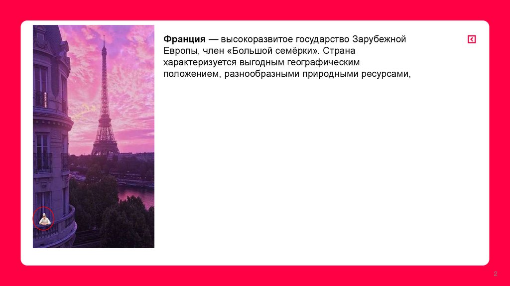Франция — высокоразвитое государство ЗарубежнойЕвропы, член «Большой семёрки». Страна