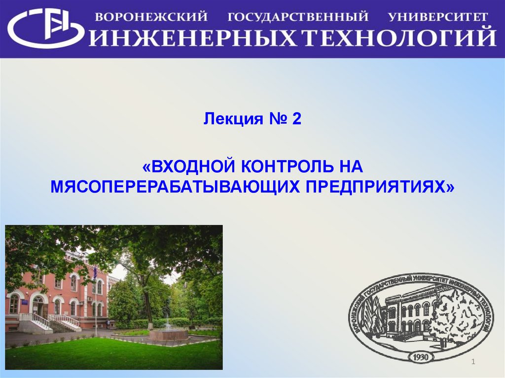Лекция № 2«ВХОДНОЙ КОНТРОЛЬ НА
