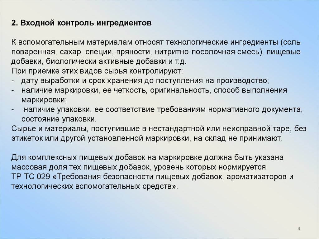 2. Входной контроль ингредиентовК вспомогательным материалам относят технологические ингредиенты (соль