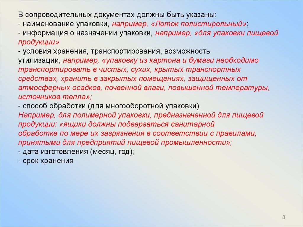 В сопроводительных документах должны быть указаны:- наименование упаковки, например, «Лоток полистирольный»;