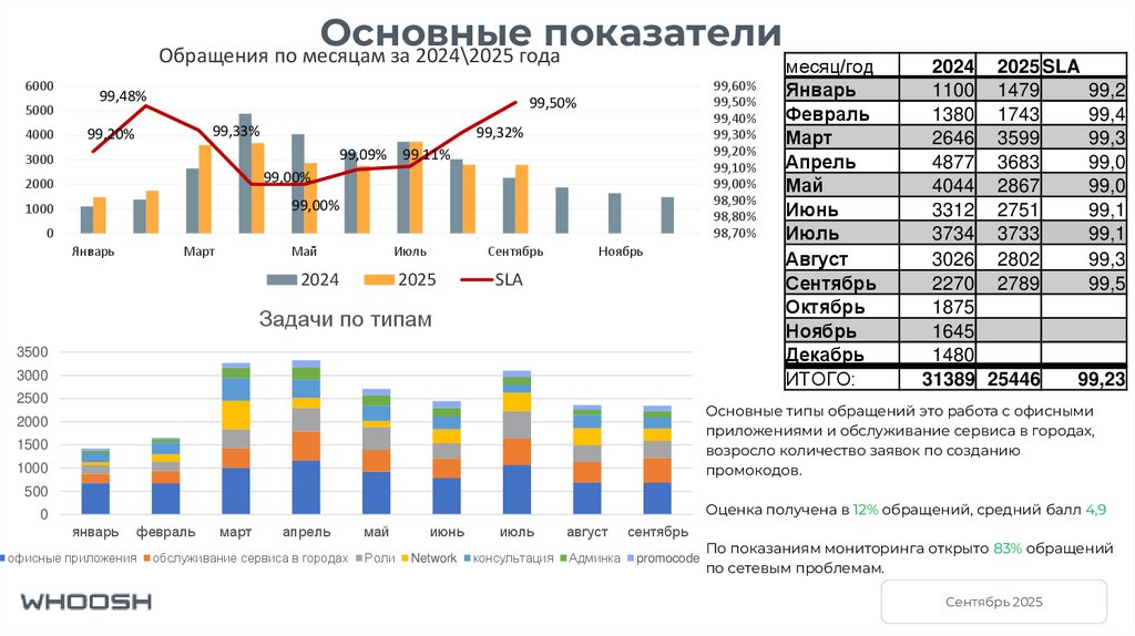 Основные показателиОбращения по месяцам за 2024\2025 года