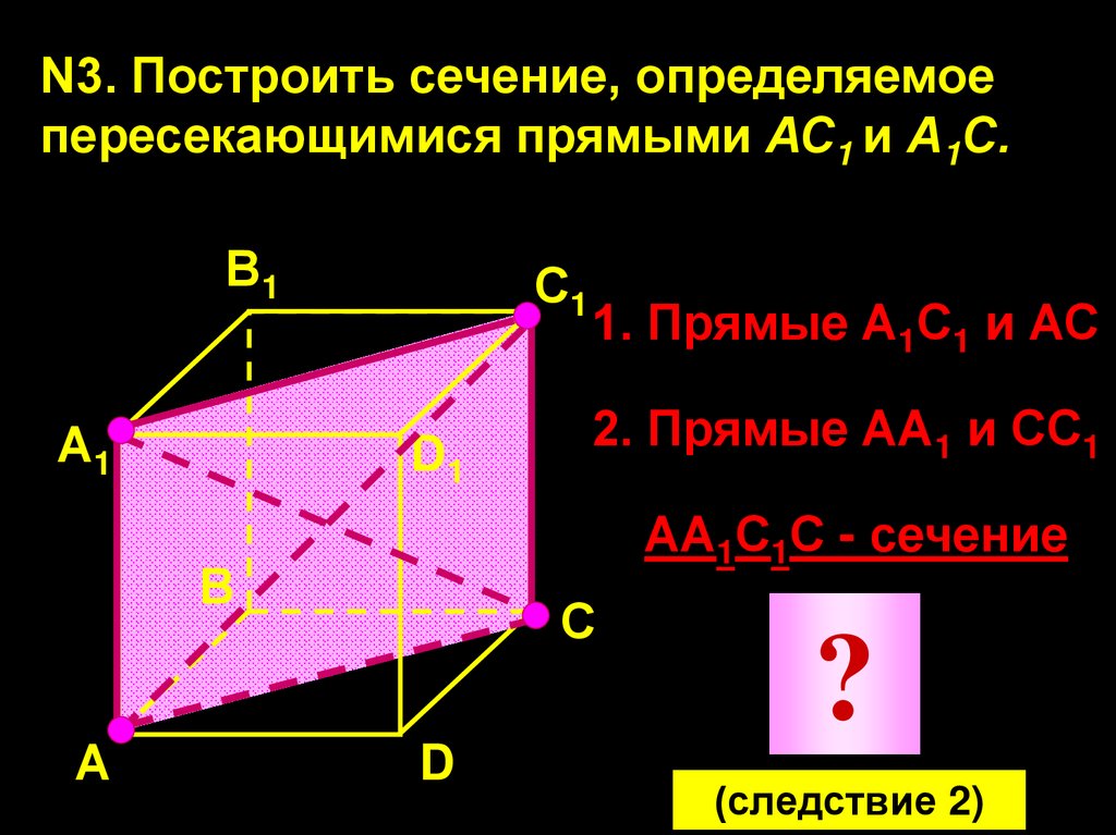 N3. Построить сечение, определяемоепересекающимися прямыми АС1 и А1С.