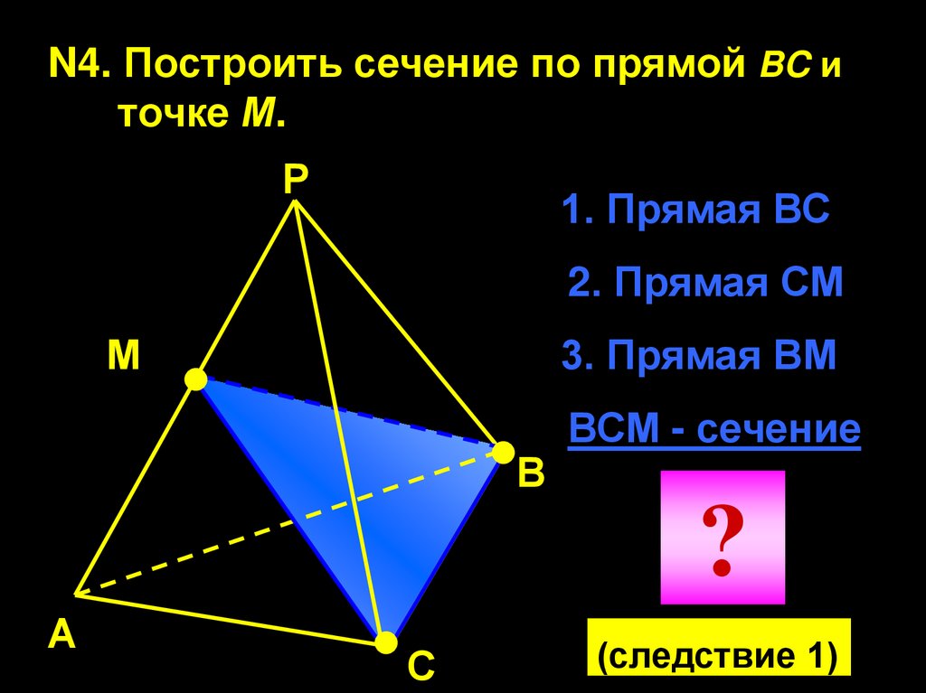 N6. Постройте сечение куба плоскостью,проходящей через точку М и прямую АС .