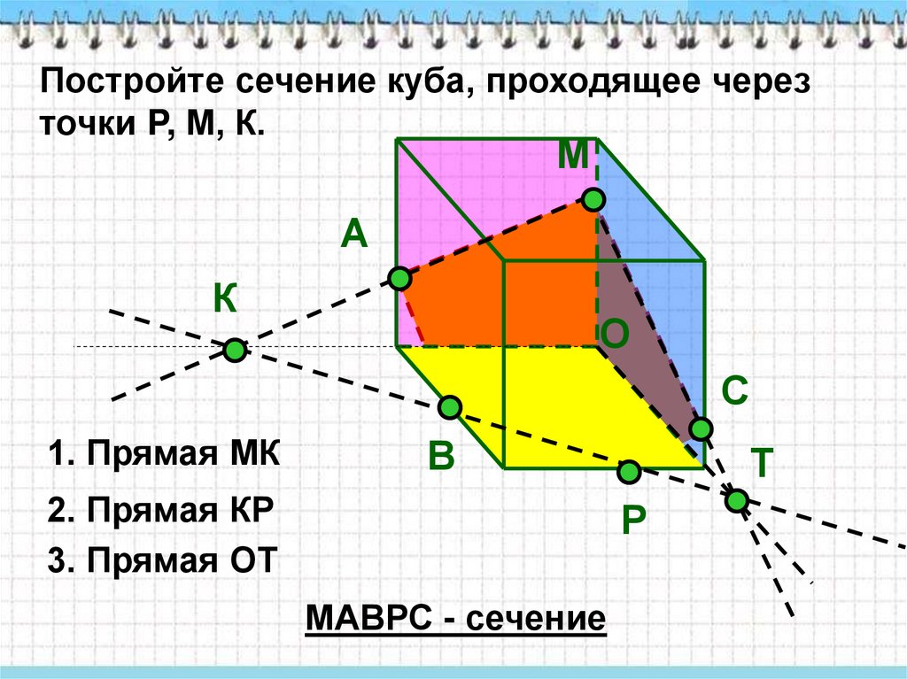 Постройте сечение куба, проходящее черезточки P, М, К.