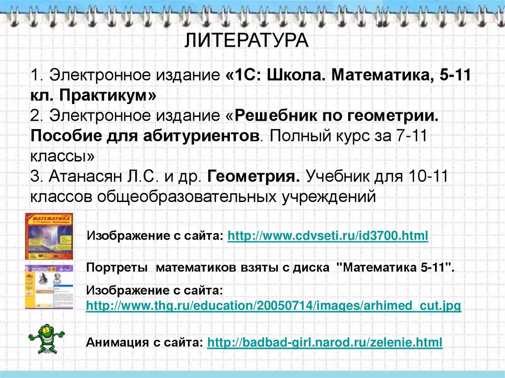 ЛИТЕРАТУРА1. Электронное издание «1С: Школа. Математика, 5-11
