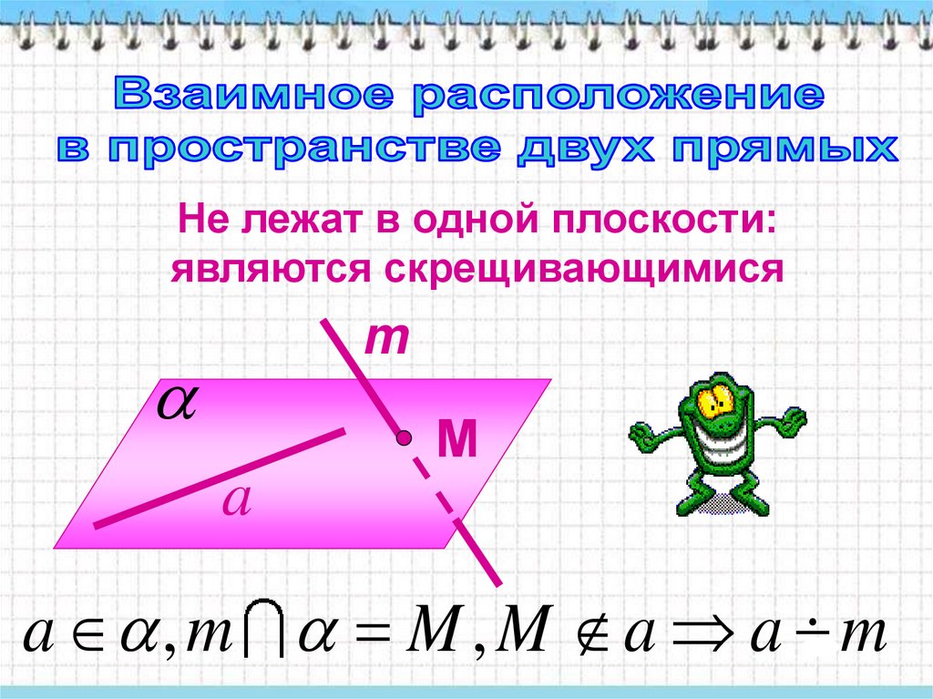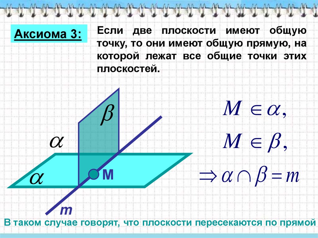 2. Через две пересекающиеся прямыепроходит плоскость, и притом только одна.