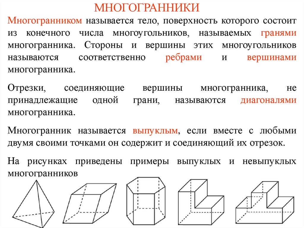 Многогранником называется тело, поверхность которого состоитиз конечного числа многоугольников, называемых гранями
