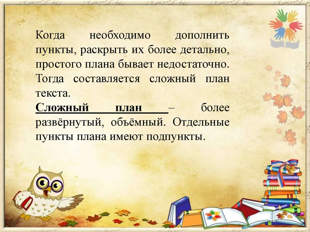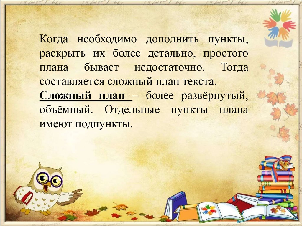 Когда необходимо дополнить пункты,раскрыть их более детально, простого