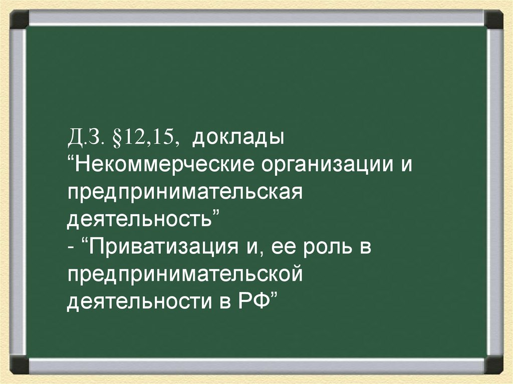 Д.З. §12,15, доклады“Некоммерческие организации и
