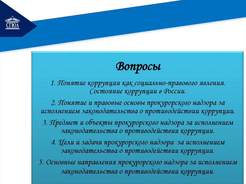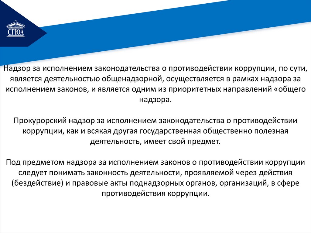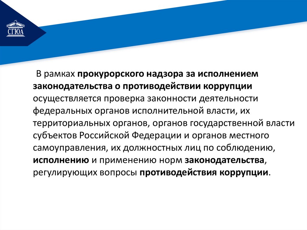 прокурорского надзора за исполнением законодательства о противодействии коррупции«