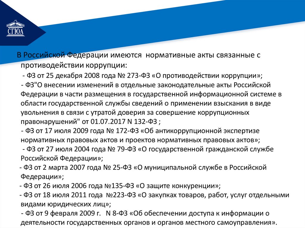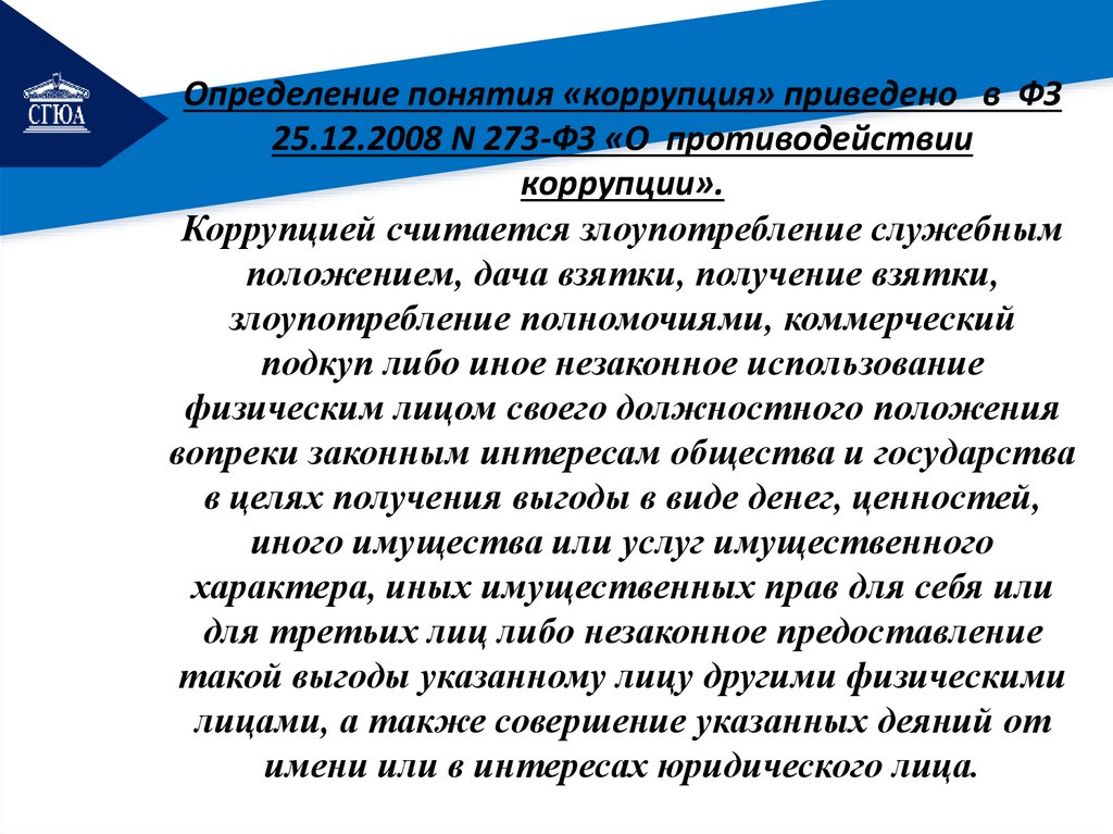 Федеральный закон от 25.12.2008 N 273-ФЗ "О противодействии коррупции».