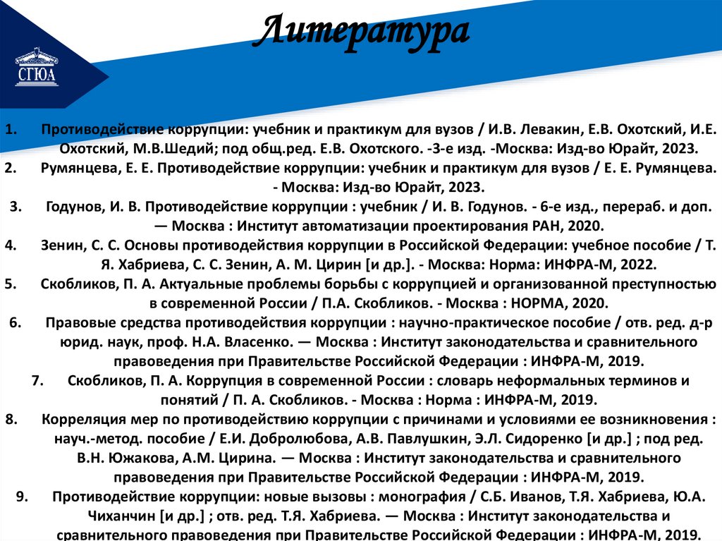 3. Годунов, И. В. Противодействие коррупции : учебник / И. В. Годунов. - 6-е изд., перераб. и доп.