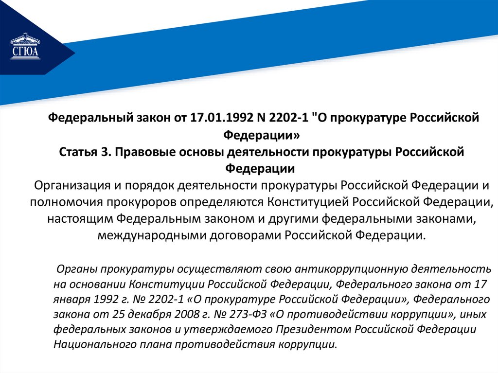 Федеральный закон от 17.01.1992 N 2202-1 "О прокуратуре Российской Федерации».