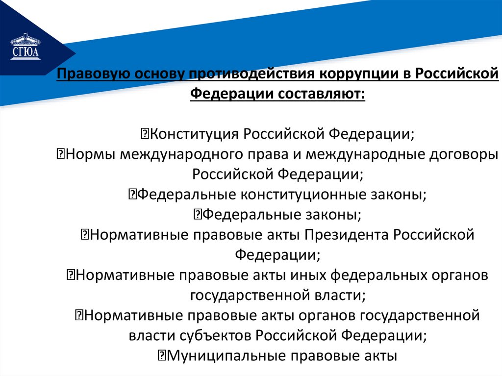 - соответствие законам в сфере противодействия коррупции правовых актов, издаваемых