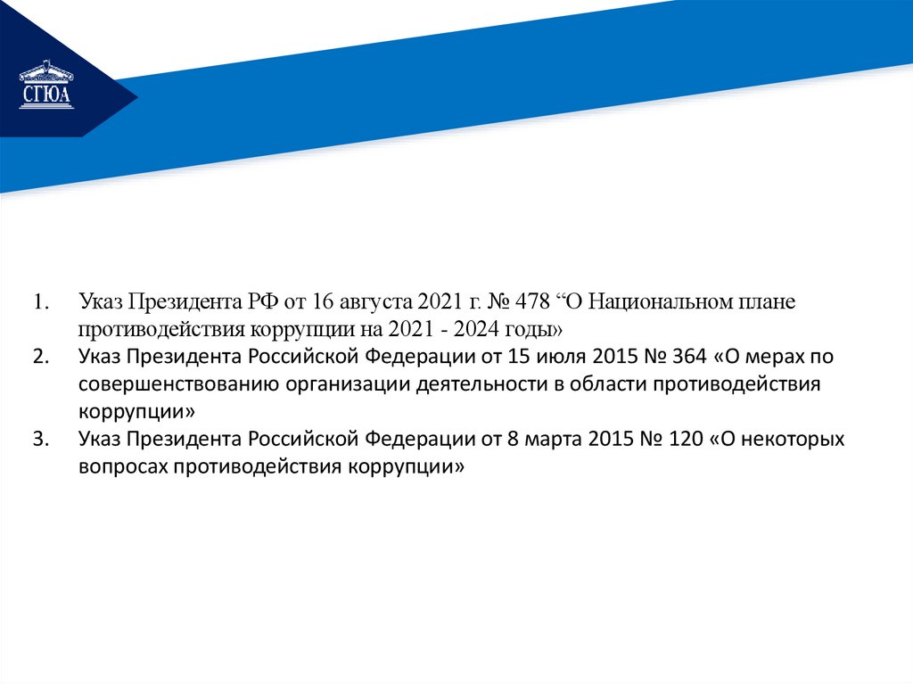 Указ Президента РФ от 16 августа 2021 г. № 478 “О Национальном плане противодействия