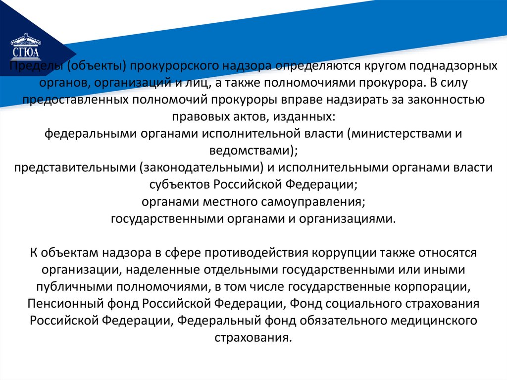 РЕМОНТПределы (объекты) прокурорского надзора определяются кругом поднадзорных