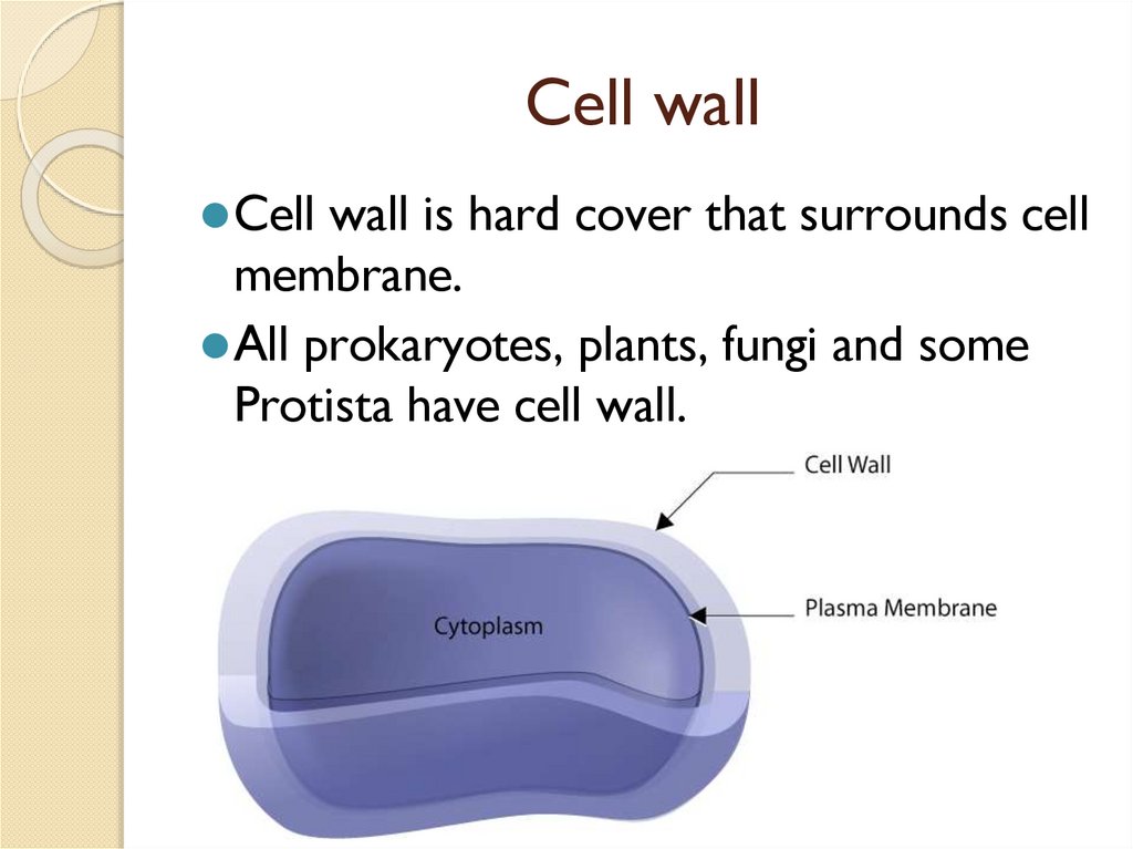 Cell wall⚫Cell wall is hard cover that surrounds cell