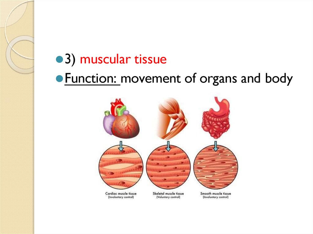 ⚫3) muscular tissue⚫Function: movement of organs and body