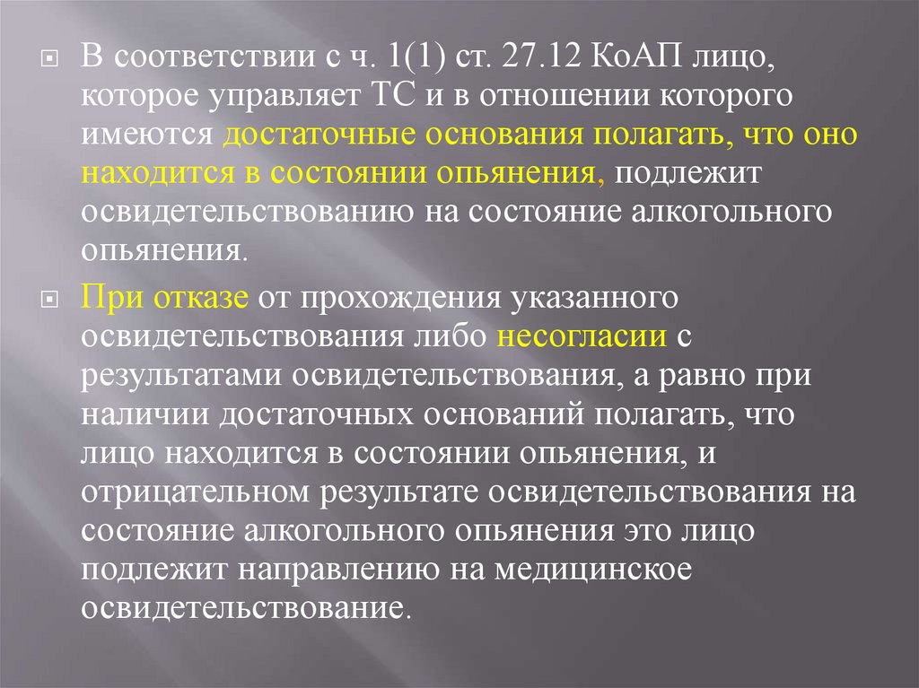 опьянения (ч. 2 ст. 12.26; она также относится к