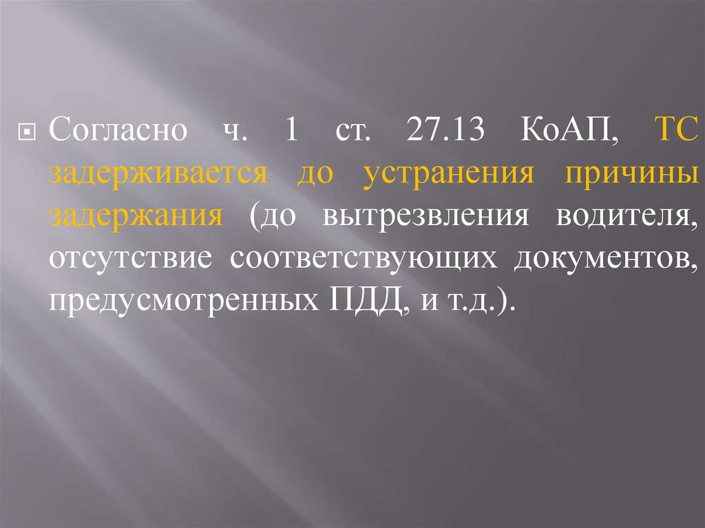 Согласноч. 1 ст. 27.13 КоАП, ТС